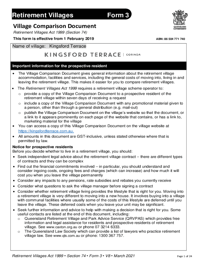 Retirement VillagesForm 3Village Comparison Document