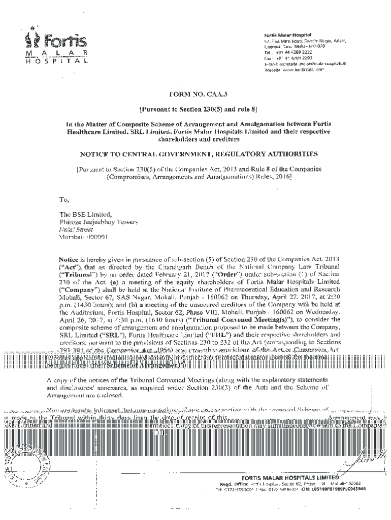 FORTS MALAY HOSPITALS LIMITED Registered Office Tel No Fax No: IN Website Email: : : : : :Forts Hospital Limited, Sector 62, Phase VIII, Moral, Punjab,160062 +91 0172 5096001 +91 0172 5096002 L85110PB1989PLC045948