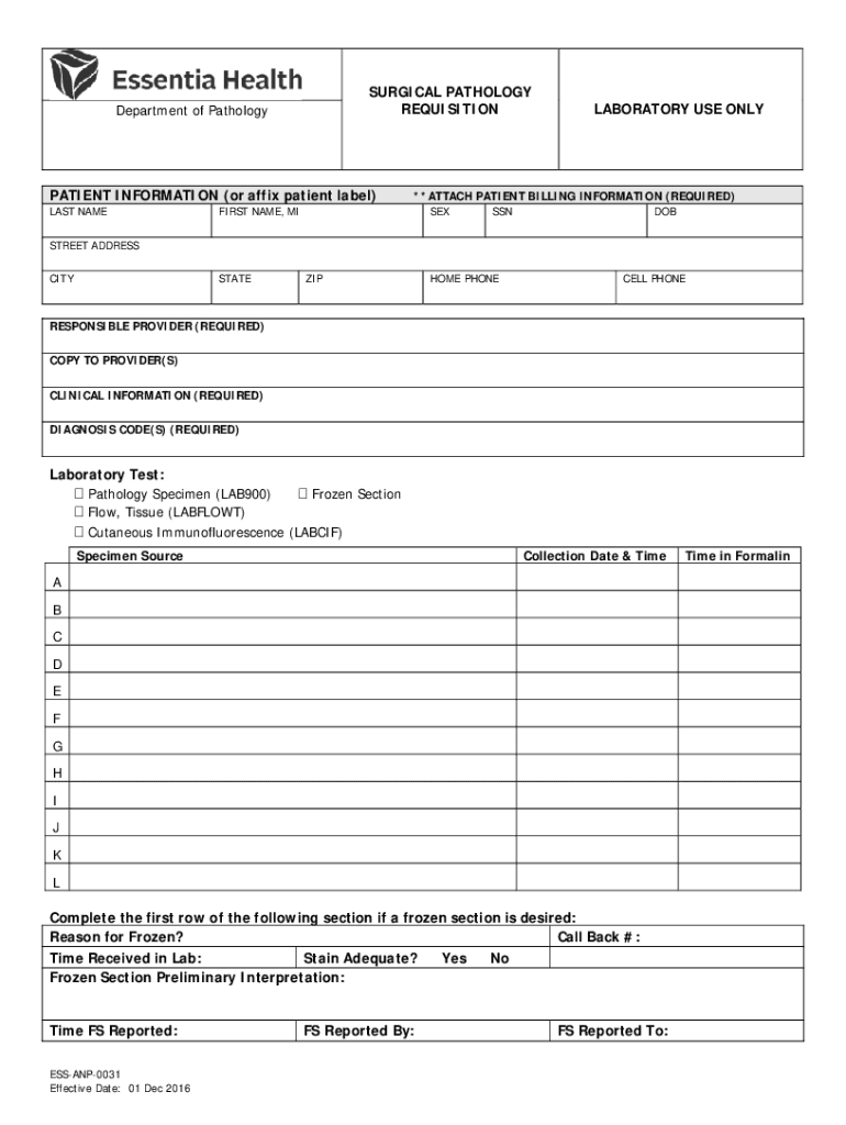 REQUISITIONDepartment of PathologyPATIENT INFORMATION (or affix patient label)