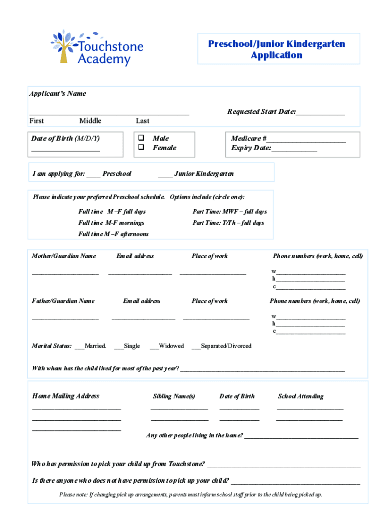 Fill out your preschool and junior kindergarten online with pdfFiller!