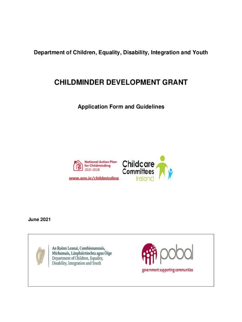 Department of Children, Equality, Disability, Integration and YouthCHILDMINDER DEVELOPMENT GRANT Application Form and Guidelines June 2021Department of Children, Equality, Disability, Integration