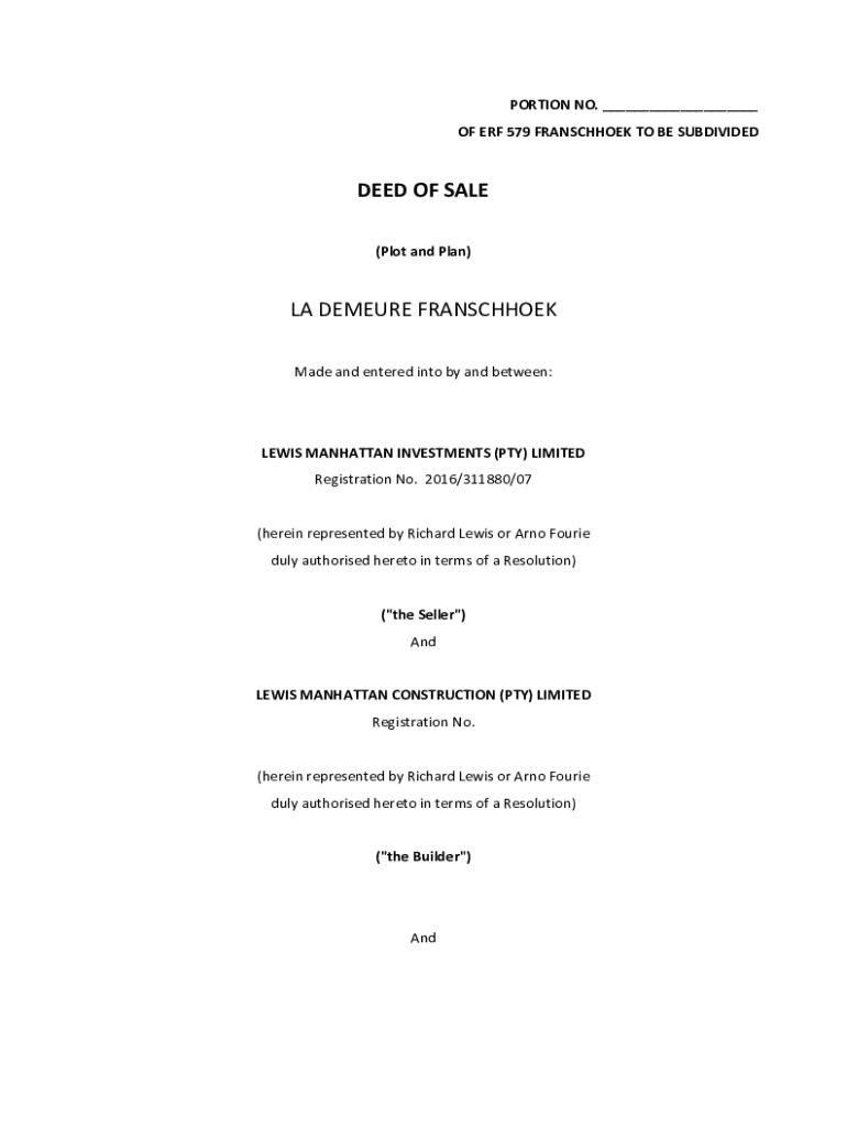 OF ERF 579 FRANSCHHOEK TO BE SUBDIVIDEDDEED OF SALE