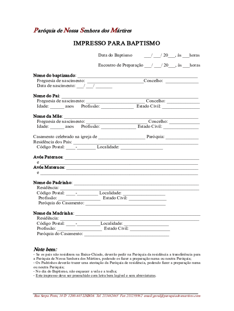Obtenha o gratuito IMPRESSO PARA BAPTISMO - Parquia dos Mrtires