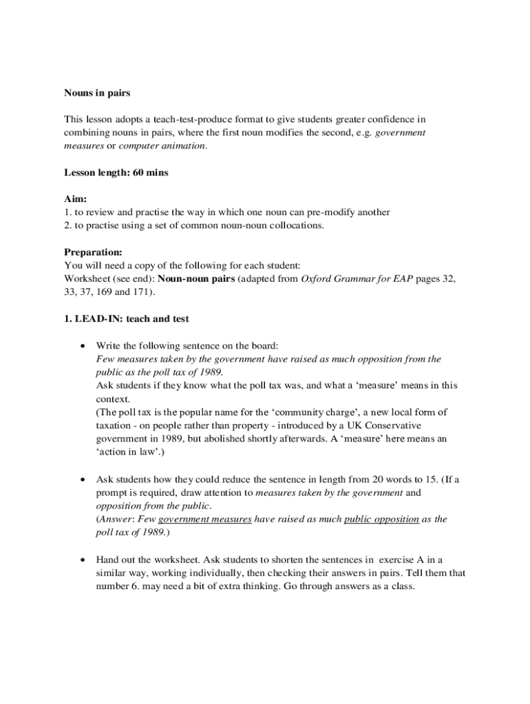 Get the free Nouns in pairs This lesson adopts a teach-test-produce ...
