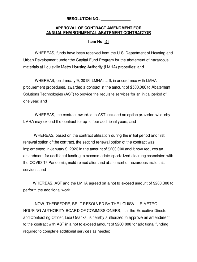 APPROVAL OF CONTRACT AMENDMENT FOR