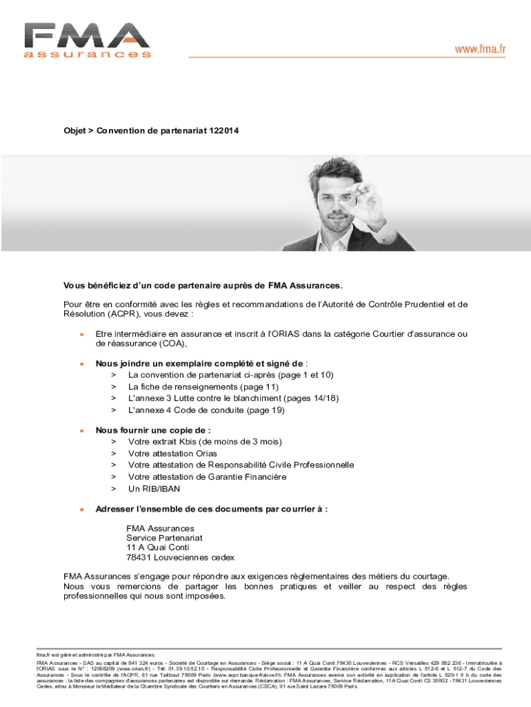 Object Convention de partenariat 122014Vous bnficiez don't code partnered APRS de FMA Assurances.