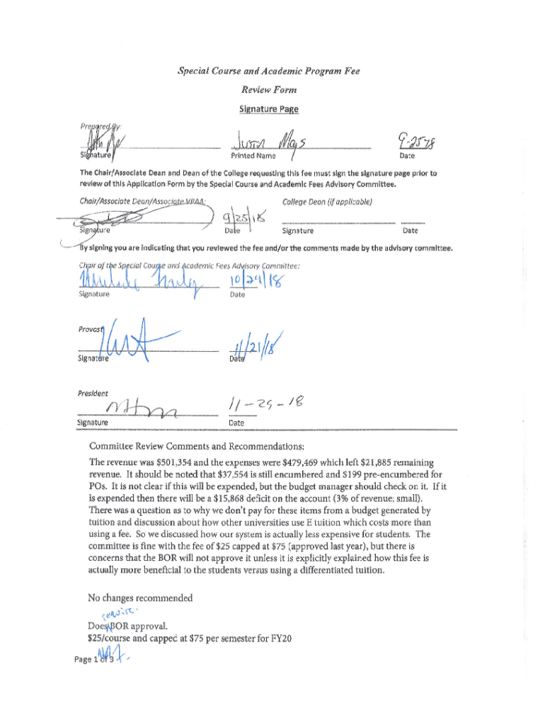 Special Course and Academic Program Fee Review Form Fiscal Year Review (Ex. FY15): FY18 Department/College: Center for Excellence in Learning & Teaching/Office of Distance Learning Fee Name: Distance