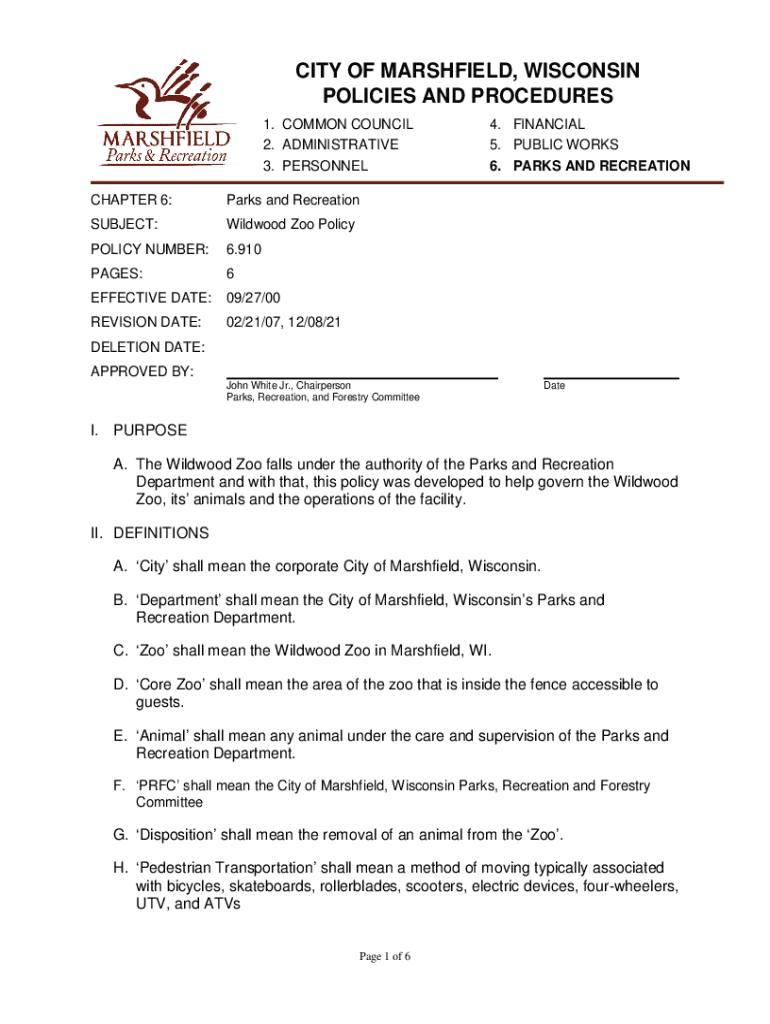 Get the free City of Marshfield, Wisconsin Policies and Procedures