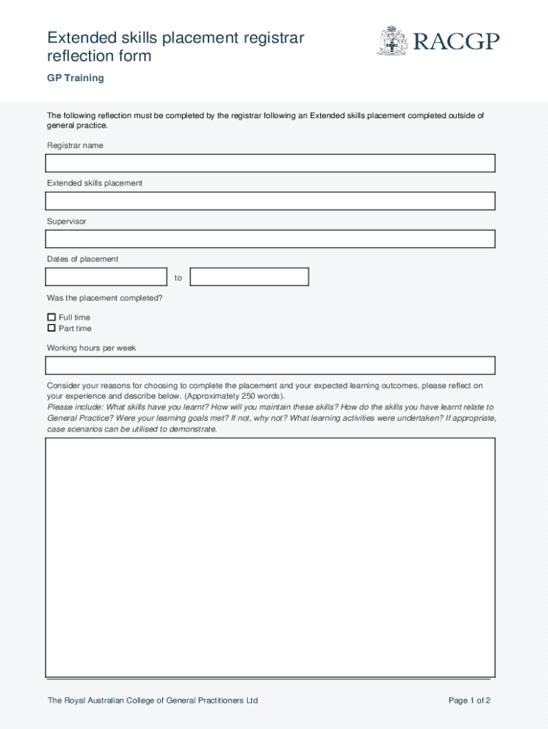 Get the free Extended skills placement registrar reflection form