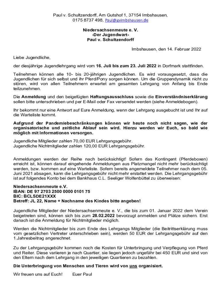 Paul v. Schultzendorff, Am Gunshot 1, 37154 Imbshausen,