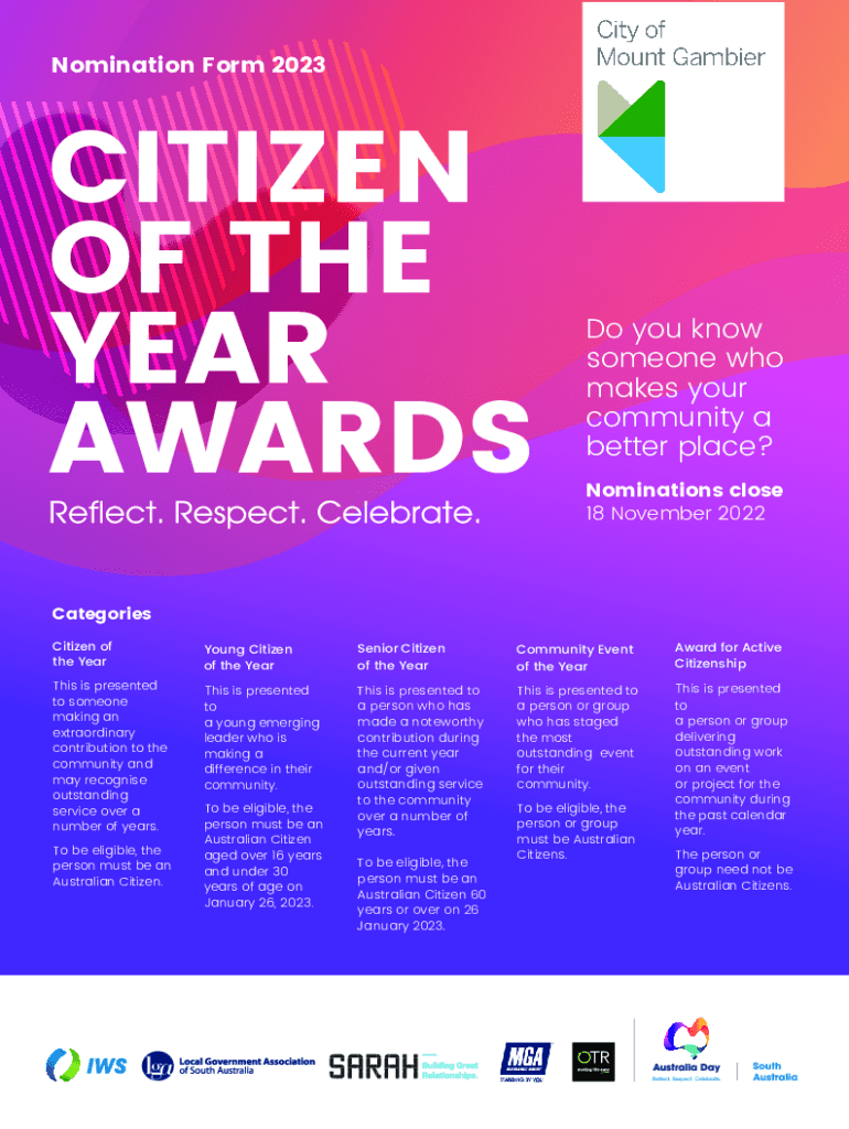 Get the free Nomination Form 2023 - CITIZEN OF THE YEAR AWARDS