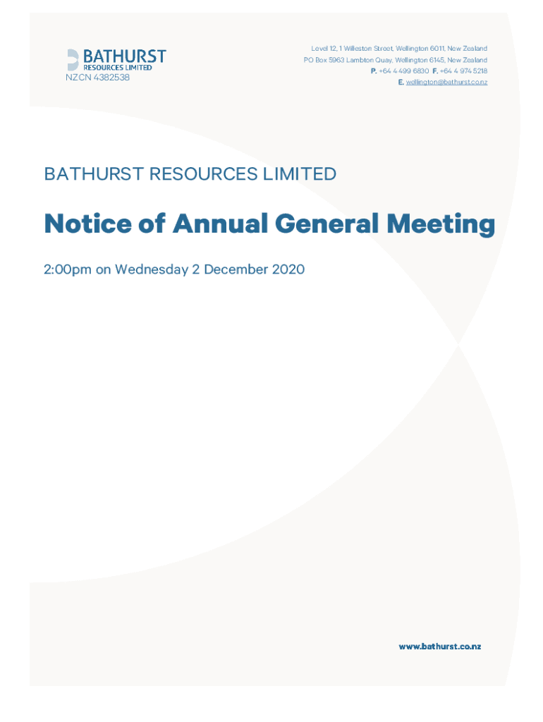 NZ CN 4382538Level 12, 1 Williston Street, Wellington 6011, New Zealand PO Box 5963 Lamb ton Quay, Wellington 6145, New Zealand P. +64 4 499 6830 F. +64 4 974 5218 E. wellington@bathurst.co.nzBATHURST