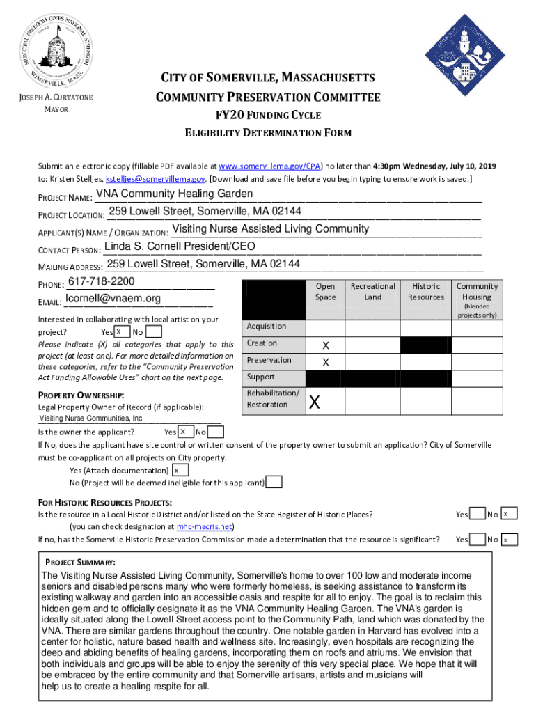 ELIGIBILITY DETERMINATION Resubmit an electronic copy (fillable PDF available at www.somervillema.gov/CPA)