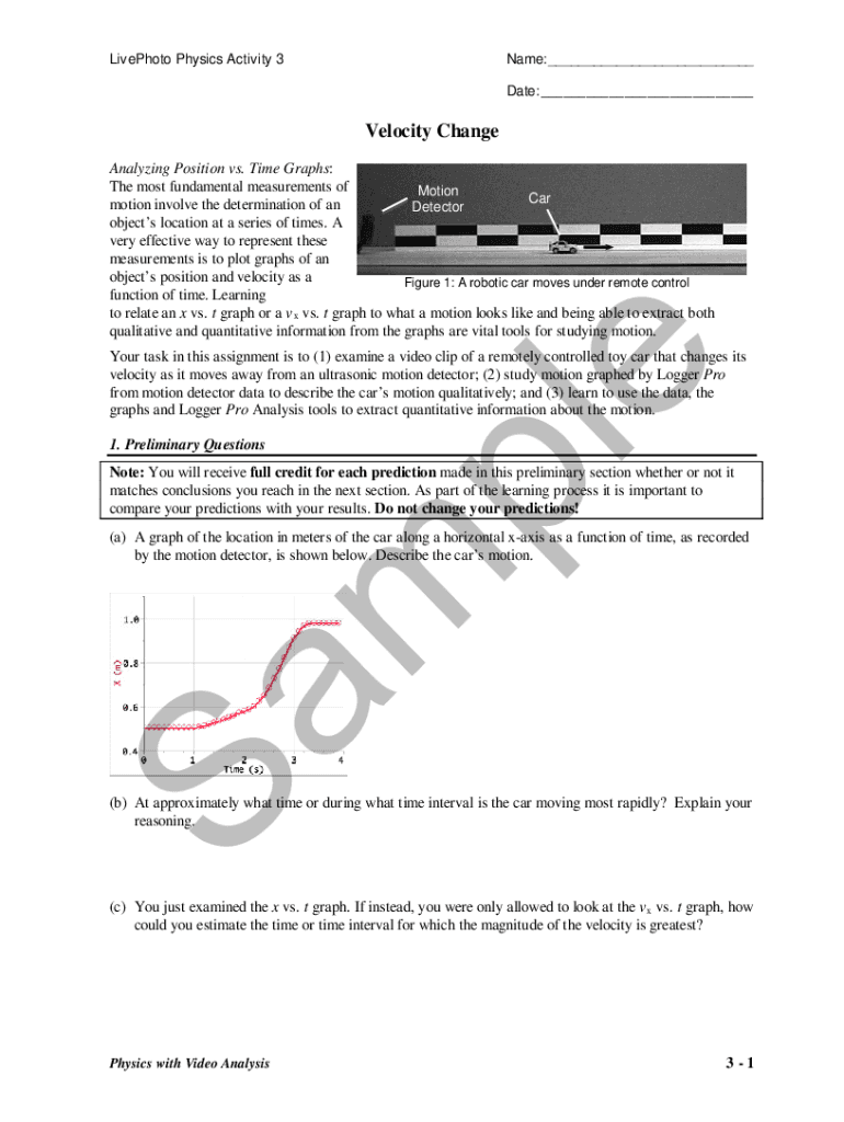 Telephoto Physics Activity 3Name: ___ Date: ___Velocity Change Analyzing Position vs. Time Graphs: The most fundamental measurements of Motion Car motion involve the determination of a Detector objects