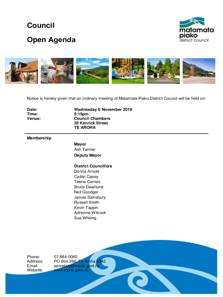 Open AgendaNotice is hereby given that an ordinary meeting of MatamataPiako District Council will be held on:
