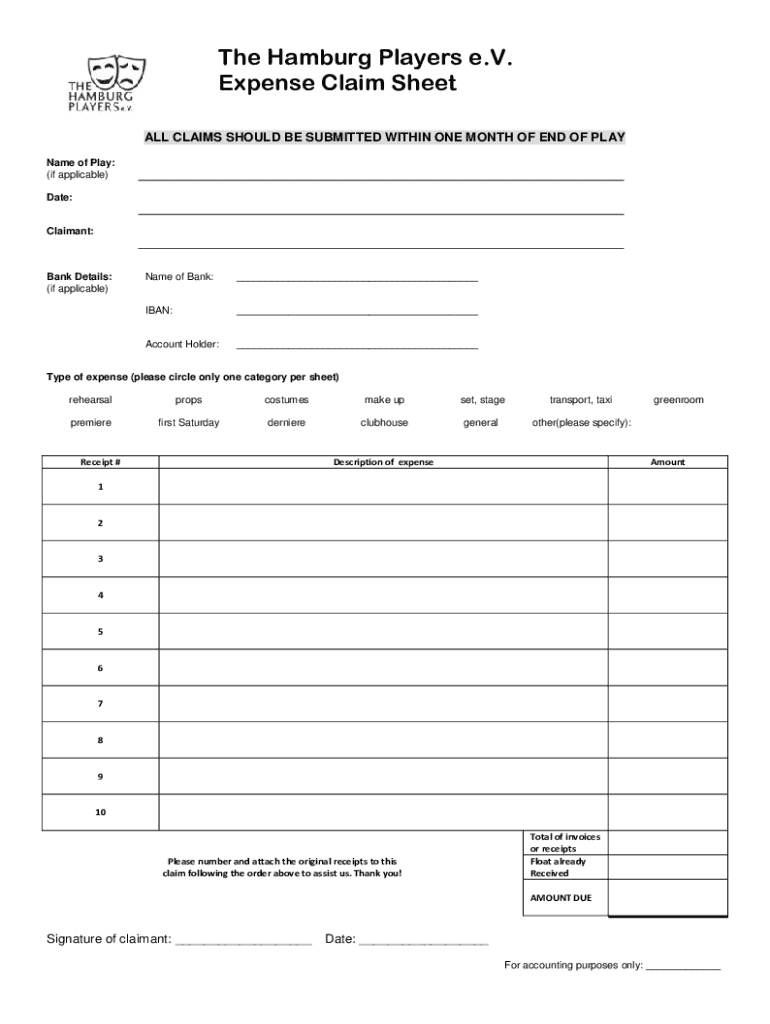 ALL CLAIMS SHOULD BE SUBMITTED WITHIN ONE MONTH OF END OF PLAY