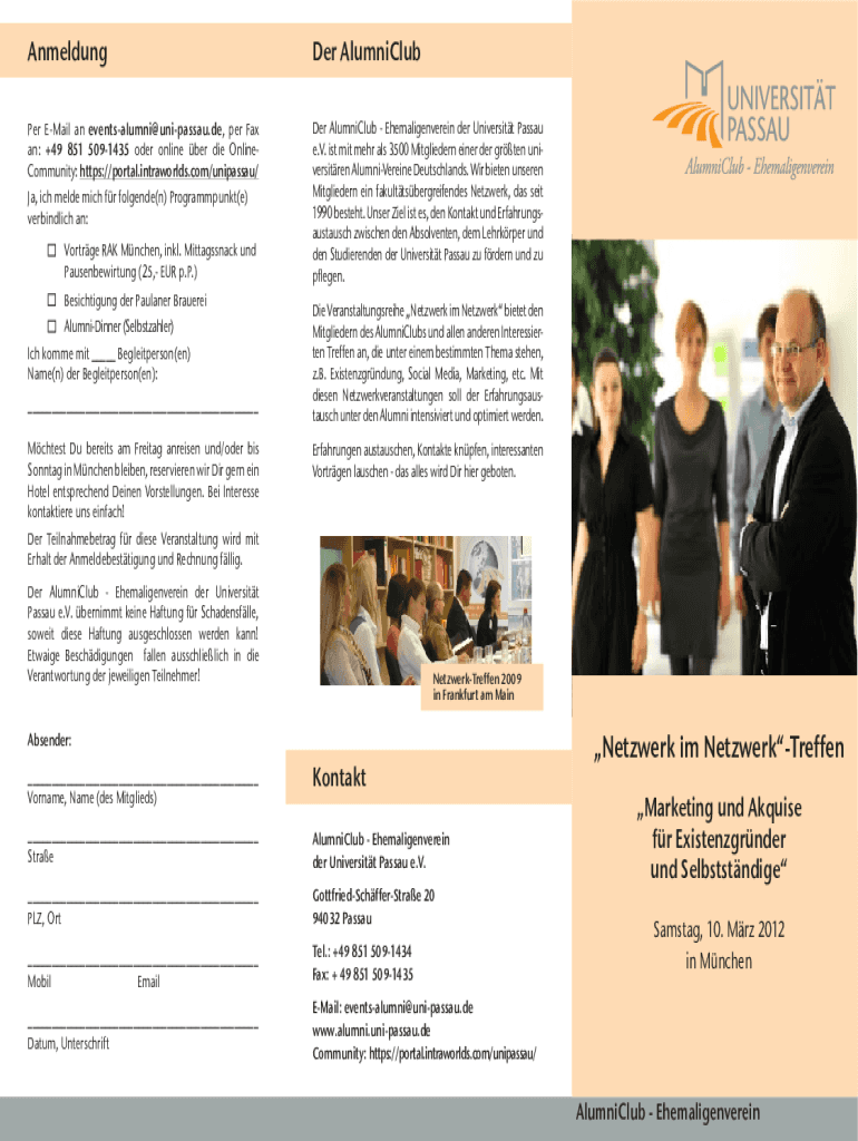 AnmeldungDer AlumniClubPer Email an eventsalumni@unipassau.de, per Fax
