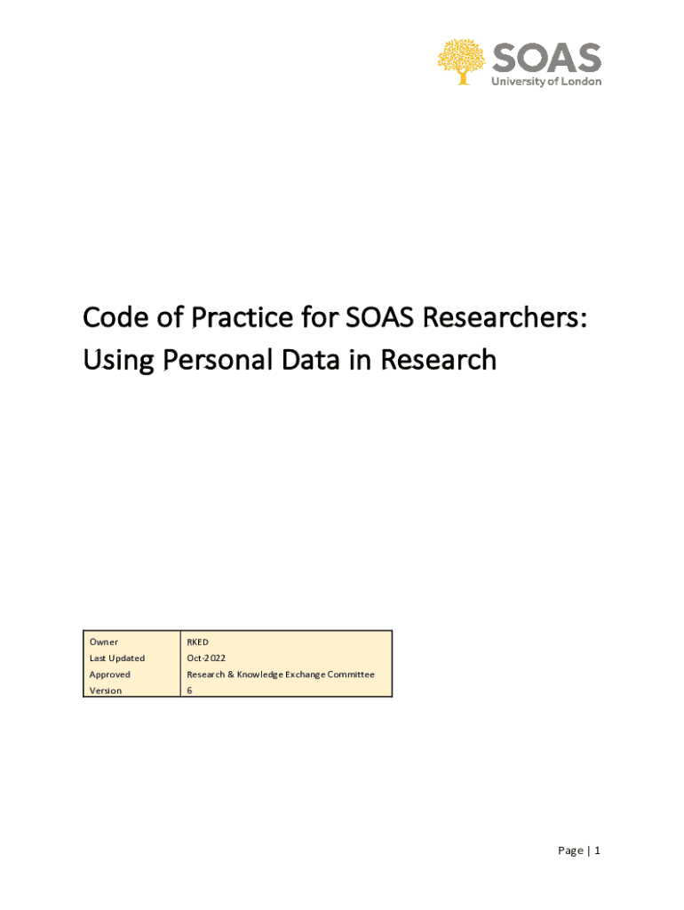 Get the free Code of Practice for SOAS staff and students Using Personal Data in Research