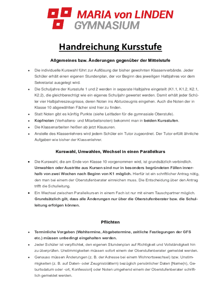 Um Änderungen gegenüber der Mittelstufe auszufüllen, müssen Sie zuerst das entsprechende Formular herunterladen oder von der Schule erhalten.