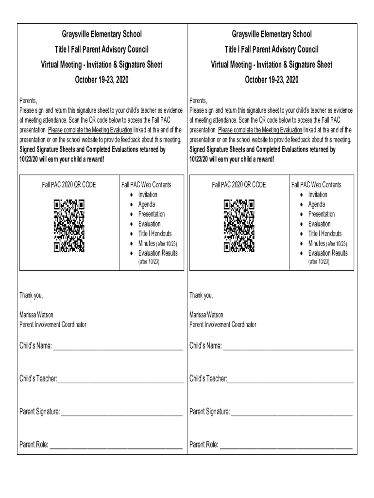 Marysville Elementary SchoolGraysville Elementary Schoolgirl I Fall Parent Advisory CouncilTitle I Fall Parent Advisory CouncilVirtual Meeting Invitation & Signature SheetVirtual Meeting Invitation