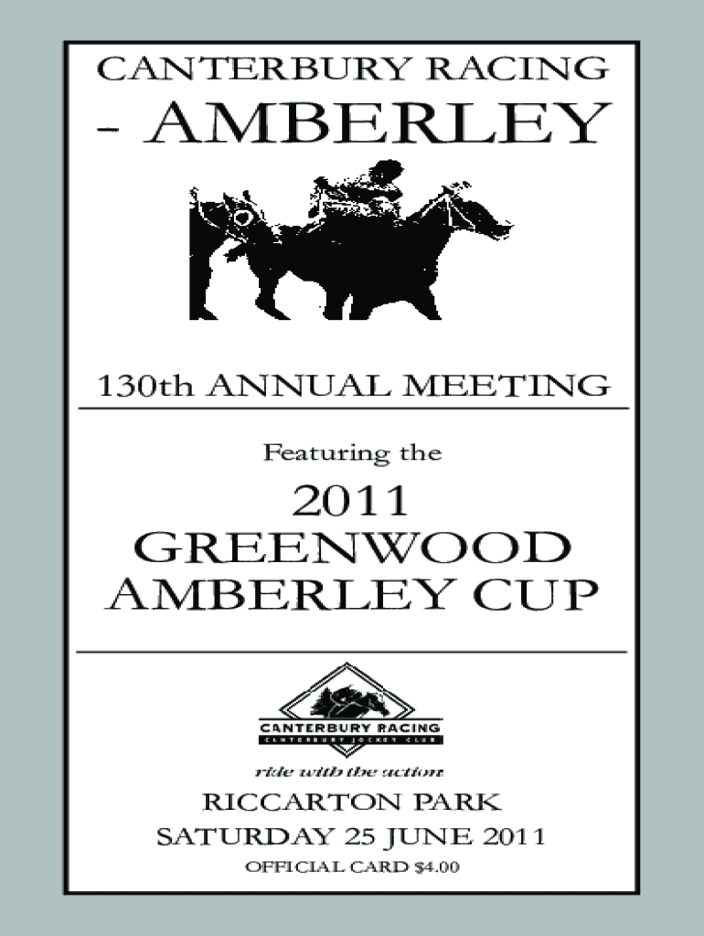 CANTERBURY RACING AMBERLEY130th ANNUAL MEETING Featuring the2011 GREENWOOD KIMBERLEY CUPRICCARTON PARK SATURDAY 25 JUNE 2011 OFFICIAL CARD $4.00Canterbury RacingAmberley 130th ANNUAL MEETING SATURDAY