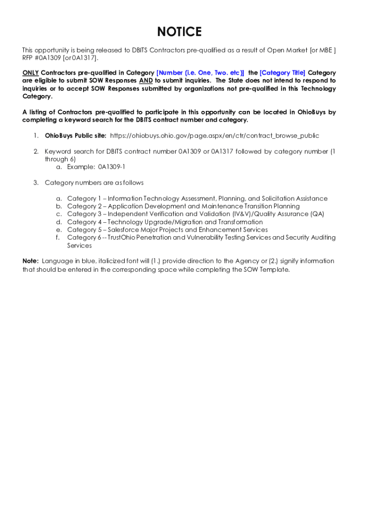 Get the free NOTICE - Ohio Procurement Services - procure ohio