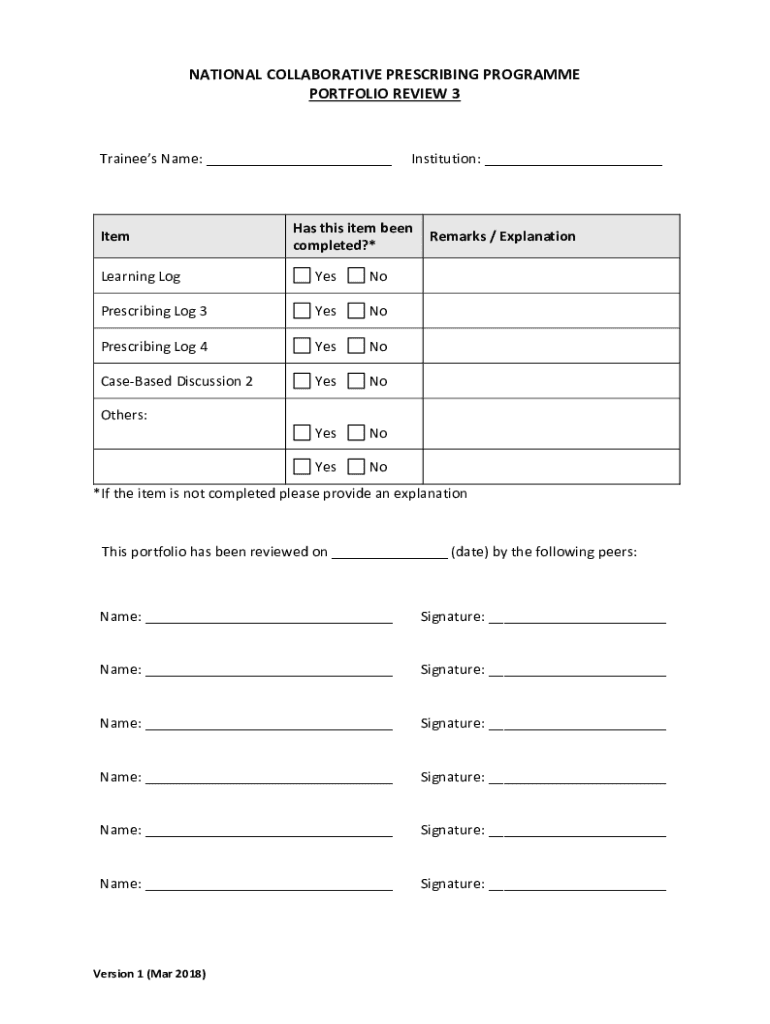 PORTFOLIO REVIEW 3Trainees Name: ___Reinstitution: ___Has this item been