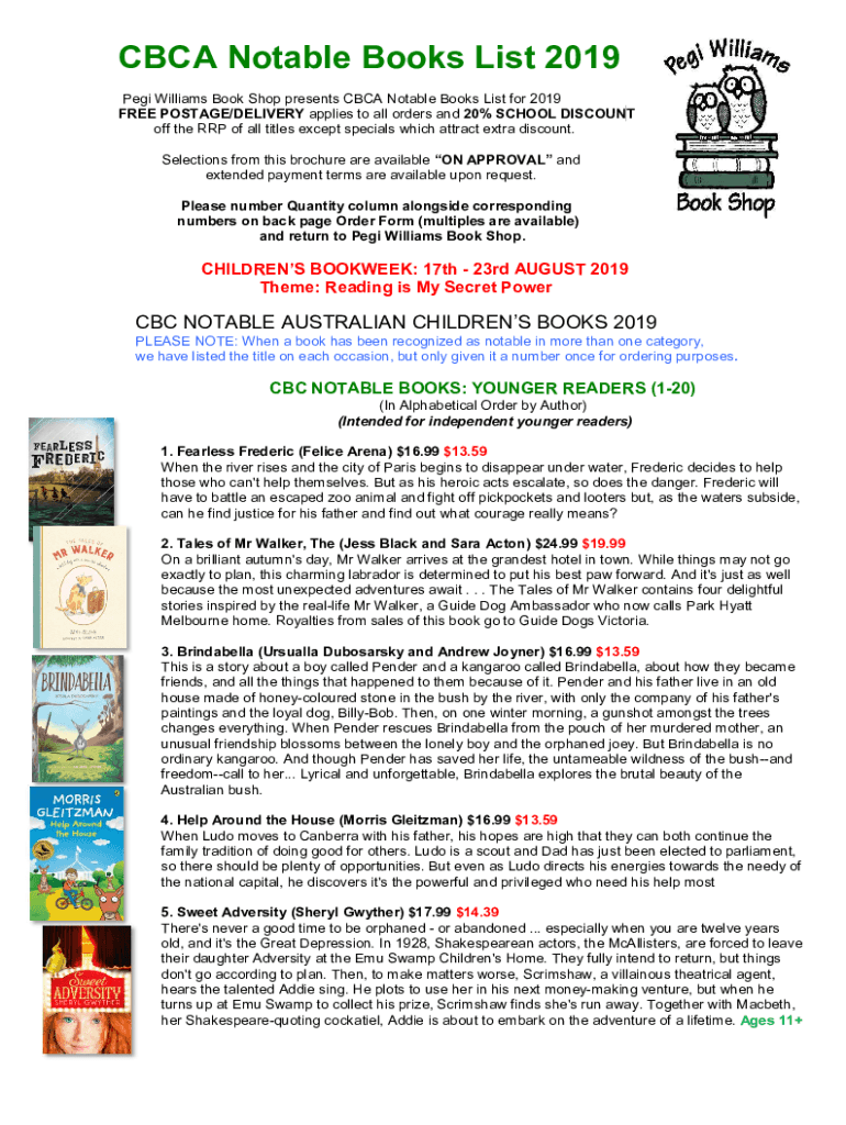 CBC Notable Books List 2019 Peg Williams Book Shop presents CBC Notable Books List for 2019 FREE POSTAGE/DELIVERY applies to all orders and 20% SCHOOL DISCOUNT off the RAP of all titles except specials