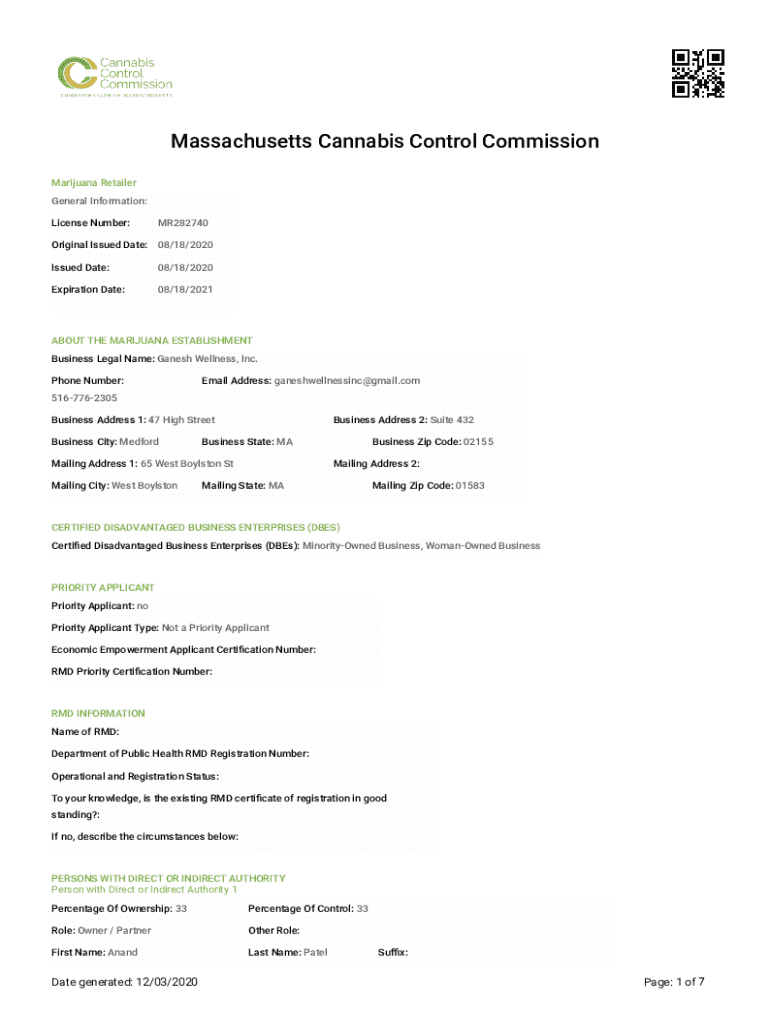 Massachusetts Cannabis Control Commission Marijuana Retailer General Information: License Number:MR282740Original Issued Date: 08/18/2020 Issued Date:08/18/2020Expiration Date:08/18/2021ABOUT THE