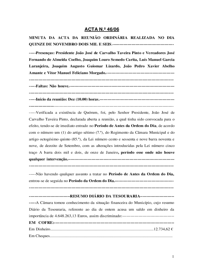 Obtenha o gratuito ACTA N. 46/06 - Municpio de Ponte de Sor