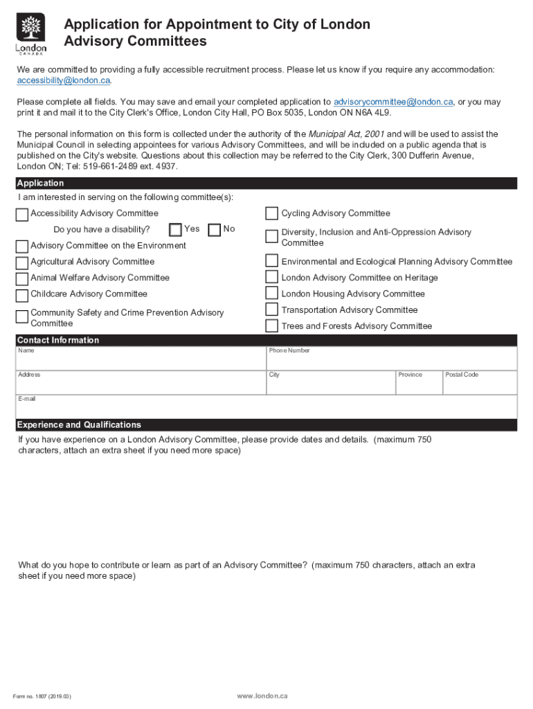 Application for Appointment to City of London Advisory Committees We are committed to providing a fully accessible recruitment process. Please let us know if you require any accommodation: accessibility@london.ca.