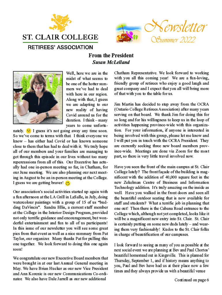 Newsletter Summer 2022From the President Susan McLellandWell, here we are in the midst of what seems to be one of the hotter summers we've had to deal with here in our region. Along with that, I guess