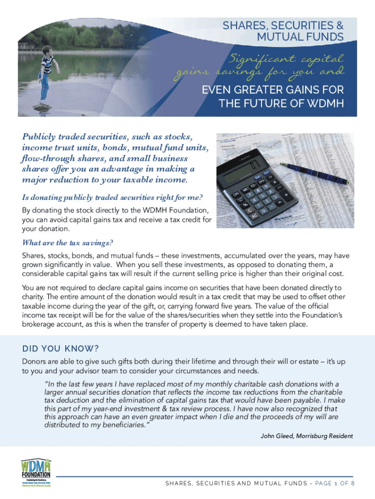 SHARES, SECURITIES & MUTUAL FUNDSSignificant capital gains savings for you and EVEN GREATER GAINS FOR THE FUTURE OF WDM Publicly traded securities, such as stocks, income trust units, bonds, mutual