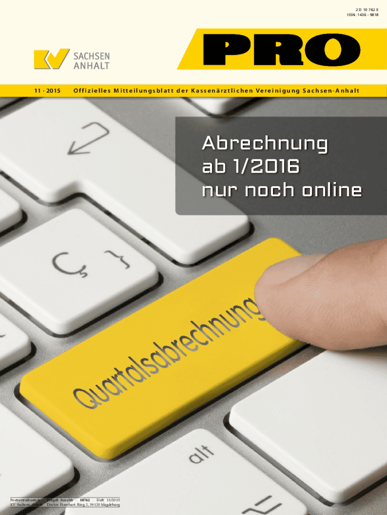 2 D 10 762 E ISSN: 1436 981811 2015O f i z i e l l e s M i t t e i l u n g s b l a t t d e r K an s e n r z t l i c h e n Ve re i n i g u n g S a c h s e n A n h an l tAbrechnung ab 1/2016 our Noah