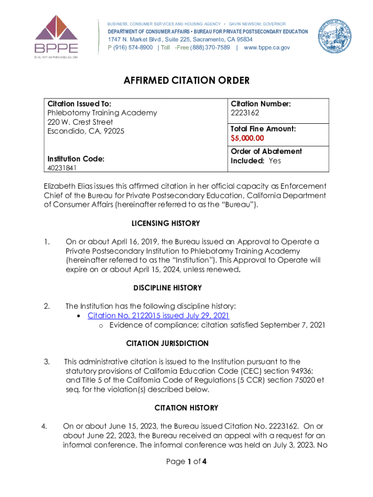 Get the free AFFIRMED CITATION ORDER