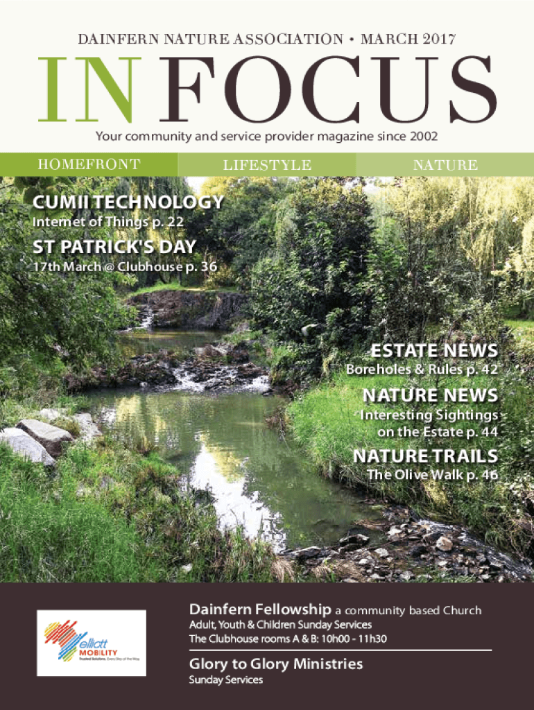 DANGER NATURE ASSOCIATION MARCH 2017IN FOCUS Your community and service provider magazine since 2002HOMEFRONTLIFESTYLENATURECUMII TECHNOLOGY Internet of Things p. 22ST PATRICK\'S DAY17th March @ Clubhouse