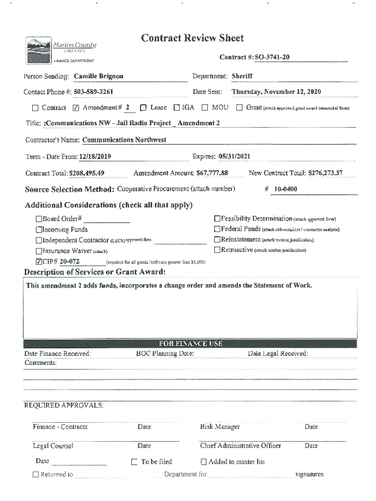 Department: Sheriff\'s OfficeAgenda Planning Date: 11/12/2020Time required:Audio/Visual aids