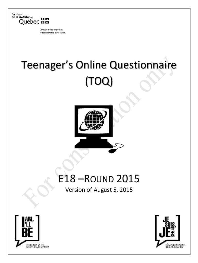 Teenagers Online Questionnaire (TO)E18 ROUND 2015 Version of August 5, 2015Sections SECTION DROPPING OUT OF SCHOOL IDENTIFICATION (DCS) ............................................................................