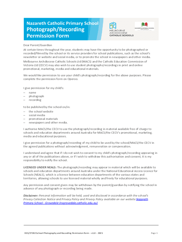Dear Parent/Guardian At certain times throughout the year, students may have the opportunity to be photographed or recorded/filmed by the school or its service providers for school publications, such