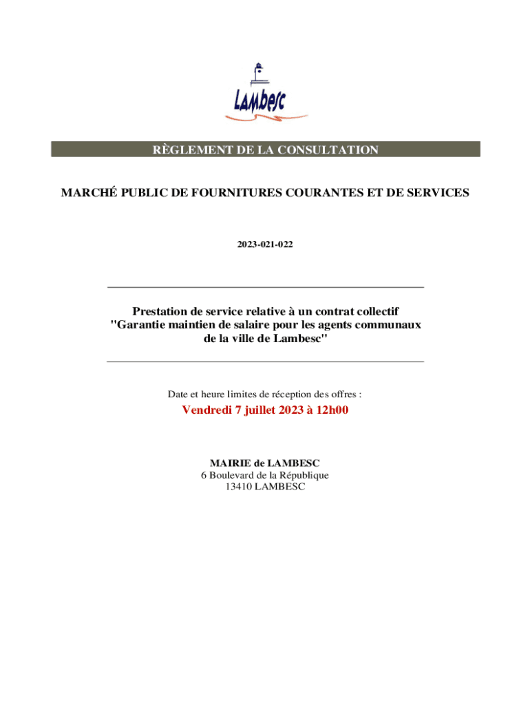 ELEMENT DE LA CONSULTATIONMARCH PUBLIC DE FURNITURE CURATES ET DE SERVICES2023021022Prestation de service relative UN contract collect if