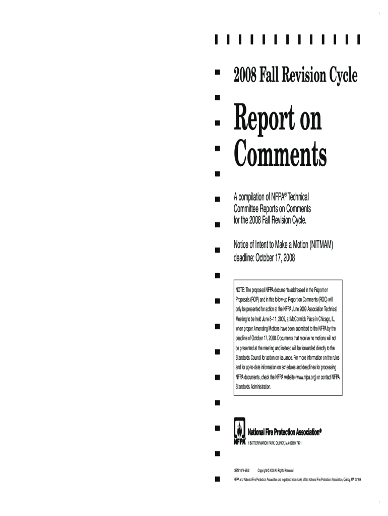 2008 Fall Revision Cycle2008 Fall Revision CycleReport on CommentsNFPA Report on Comments compilation of NFPA Technical Committee Reports on Comments for the 2008 Fall Revision Cycle. Notice of Intent
