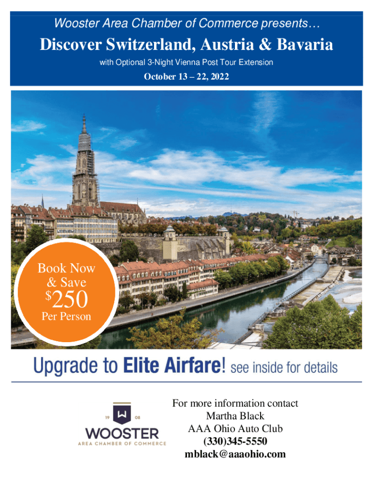 Wooster Area Chamber of Commerce presentsDiscover Switzerland, Austria & Bavaria with Optional 3Night Vienna Post Tour Extension October 13 22, 2022Book Now & Save $250Per Person more information