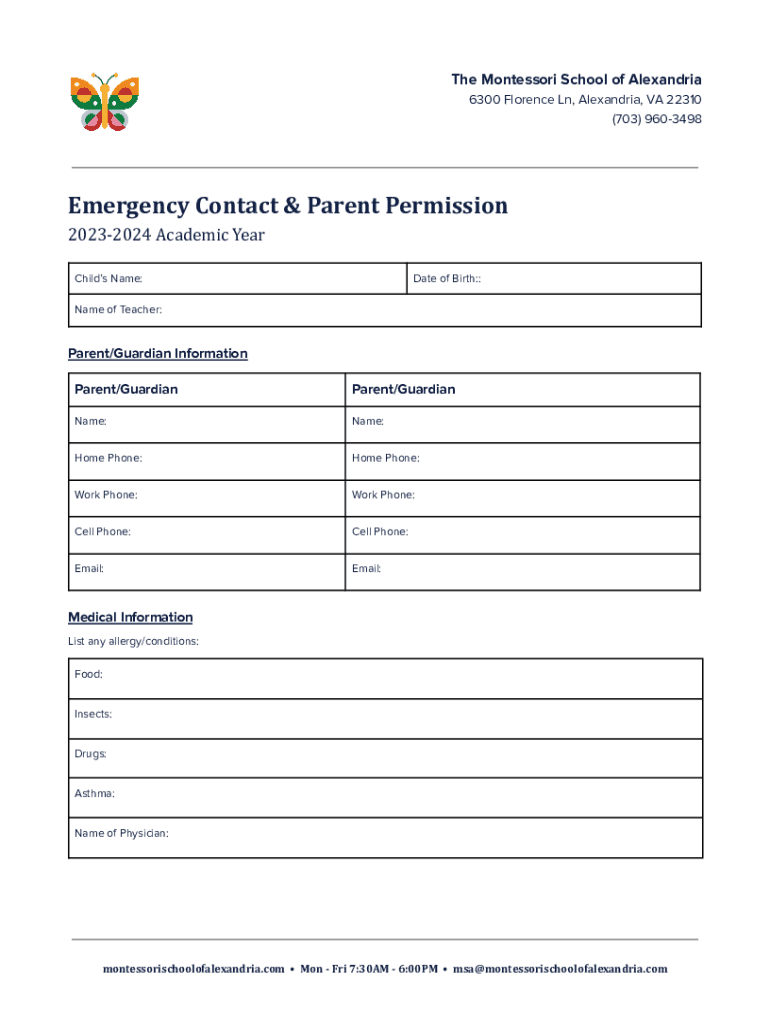 Child's Name:Date of Birth::Name of Teacher:Parent/Guardian