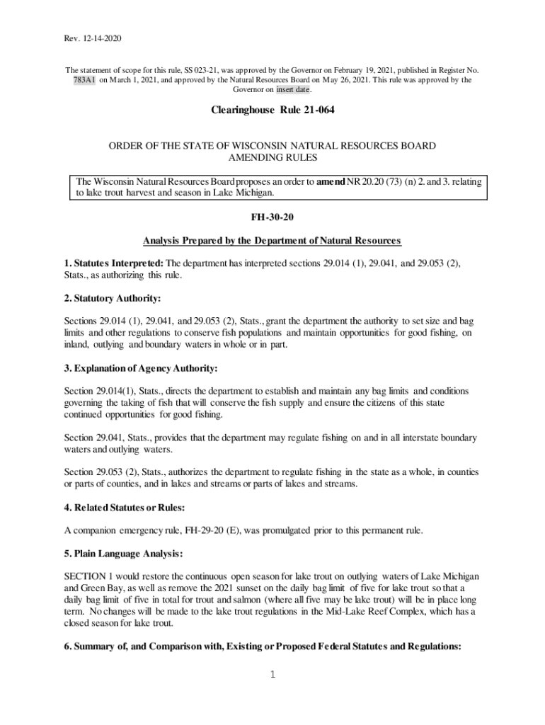 Rev. 12142020The statement of scope for this rule, SS 02321, was approved by the Governor on February 19, 2021, published in Register No. 783A1 on M.Arch. 1, 2021, and approved by the Natural Resources