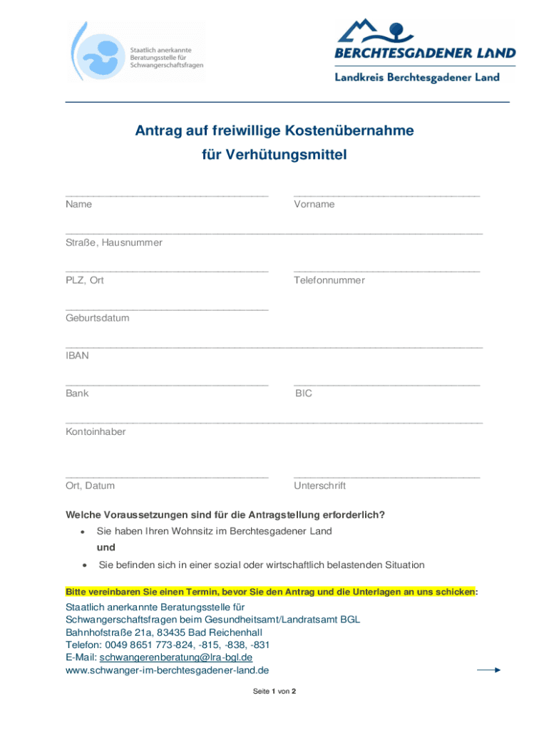 Holen Sie sich kostenlos Antrag auf freiwillige Kostenbernahme fr Verhtungsmittel