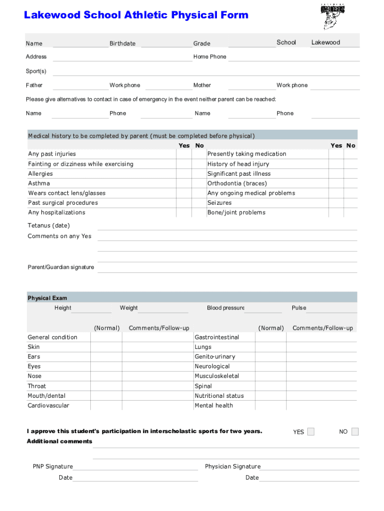 Lakewood School Athletic Physical Form