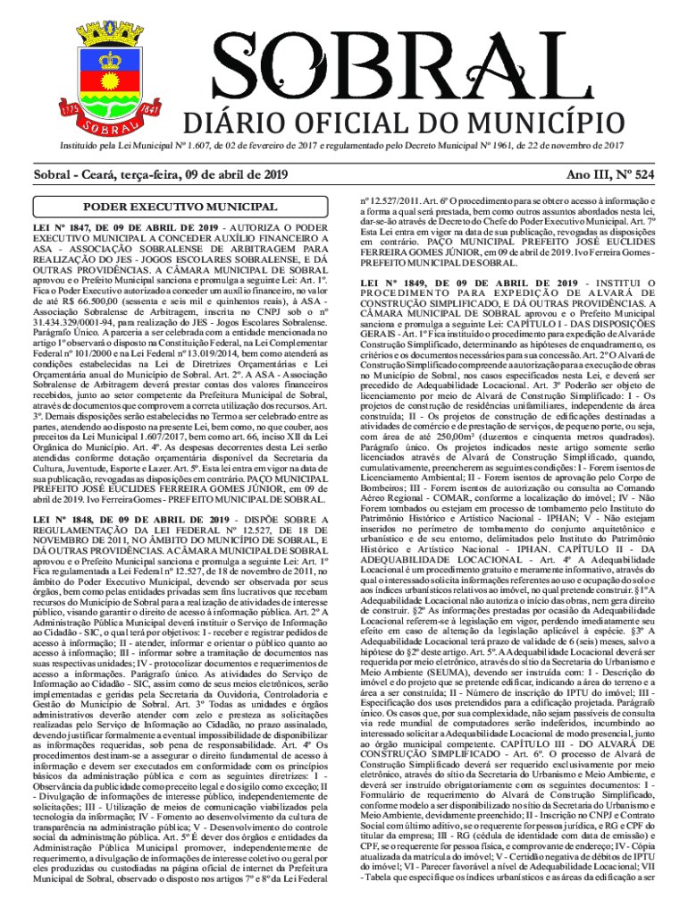 DARIO OFFICIAL DO MUNICIPAL Institute plea Lei Municipal N 1.607, DE 02 DE several DE 2017 e regulamentado polo Secret Municipal N 1961, DE 22 de November de 2017Sobral Care, terafarad, 09 de April