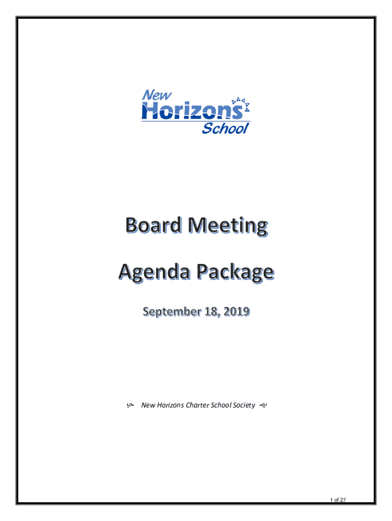 New Horizons Charter School Society 1 of 27NEW HORIZONS CHARTER SCHOOL SOCIETY BOARD OF DIRECTORS MEETING SEPTEMBER 18, 2019, WandaVision: New Horizons School will enable gifted students to strive