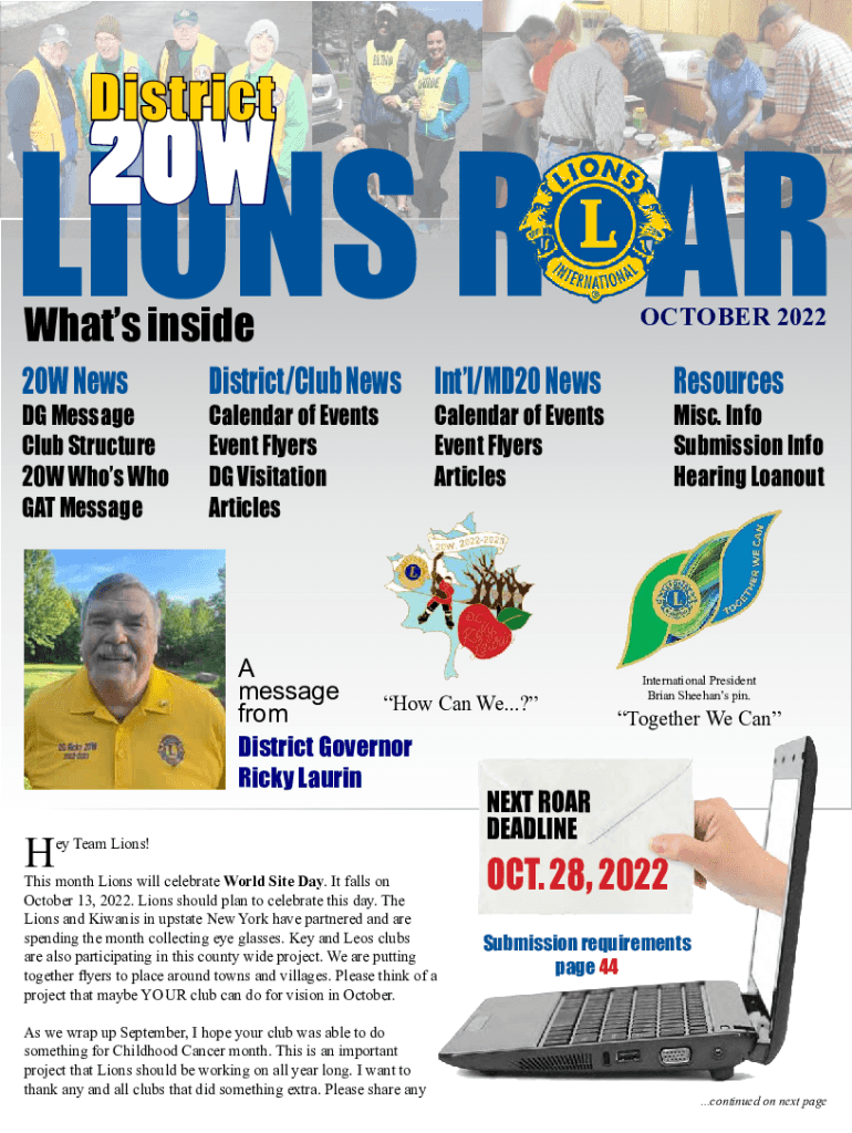 20WWhats inside20W News DG MessageClub Structure20W Who's What MessageOCTOBER 2022District/Club Cuisine/MD20 NewsCalendar of EventsEvent Flyers VisitationArticlesCalendar of EventsMisc.