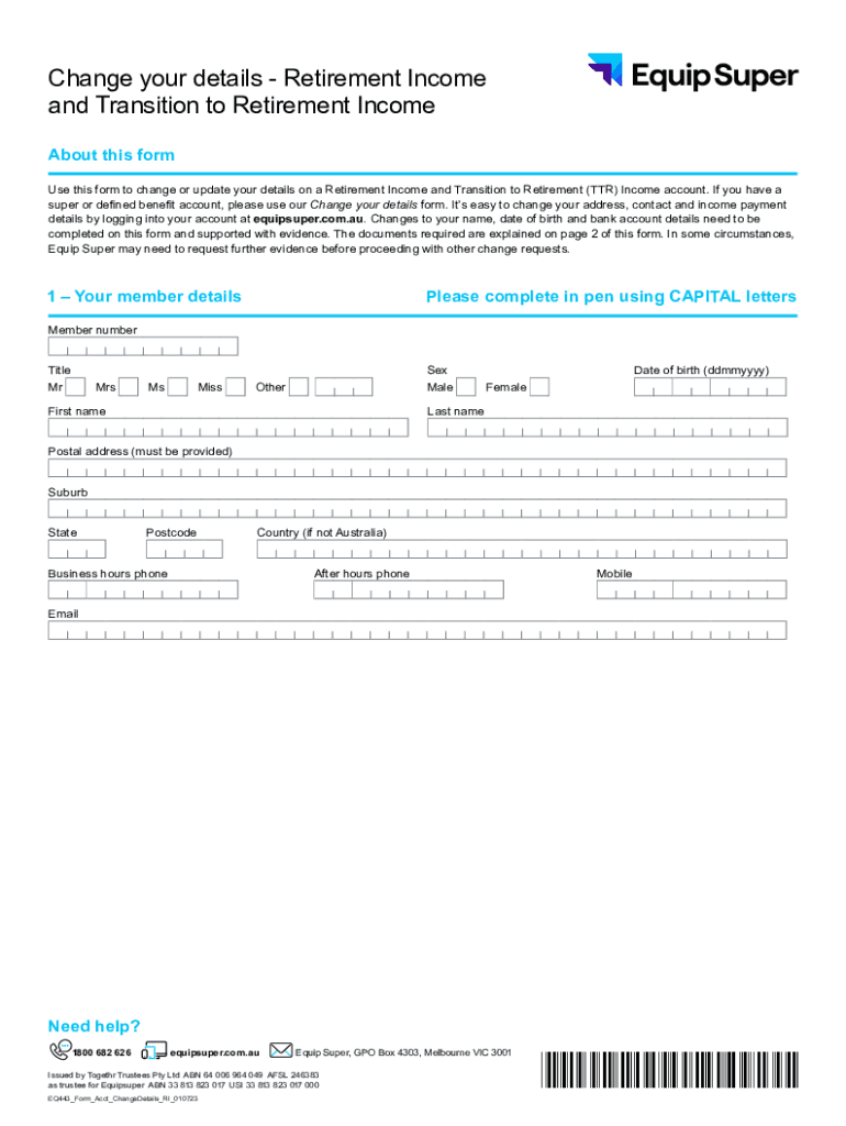 Change your details Retirement Income and Transition to Retirement Income About this form Use this form to change or update your details on a Retirement Income and Transition to Retirement (TTR) Income